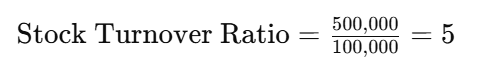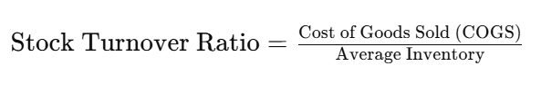 For example, if a company has a COGS of $500,000 and an average inventory of $100,000, the stock turnover ratio would be: