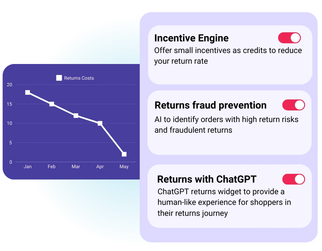 Improve your bottom line and reduce costs associated with returns with the power of an AI-driven incentive engine and converting them into exchanges.